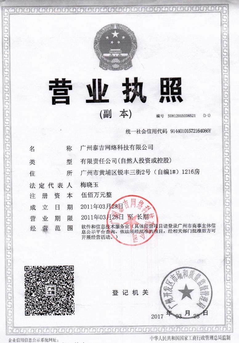 廣東泰(tai)吉(ji)智(zhi)能科技(ji)有限公司廣州市黃埔區(qu)銳豐中心(xin)4棟(dong)1410-1411